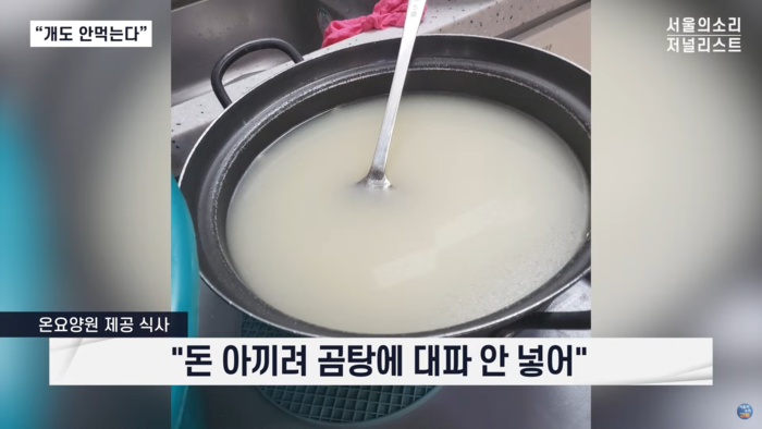 뿐만 아니라 남겨진 잔반들도 버리지 않고 다시 모아 다음 식사에 다시 제공하고 있는 것으로 의심되는 상황이며 식기 역시 비위생적으로 제공되고 있는 것으로 보이는 제보 사진도 이날 방송을 통해 공개되기도 했다.