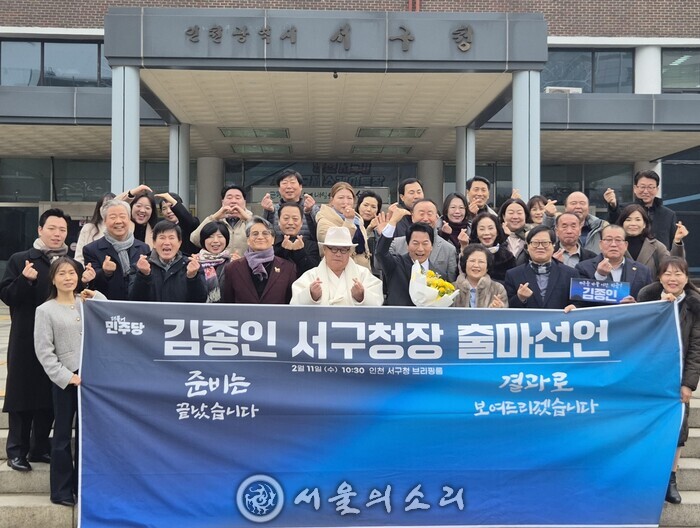 ![]() ▲ 김종인 서구(서해구)청장 출마 기자회견 후 기념 © 이기만 |