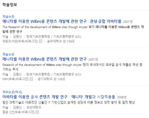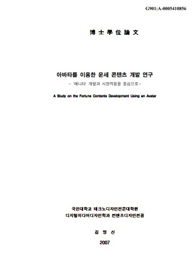 ‘애니타를 이용한 Wibro용 콘텐츠 개발에 관한 연구-관상, 궁합 아바타를 개발을 중심으로’는 박사 학위논문 내용의 축약판으로 박사 학위 논문 작성 전 마련된 자료를 바탕으로 작성한 것으로 보인다.